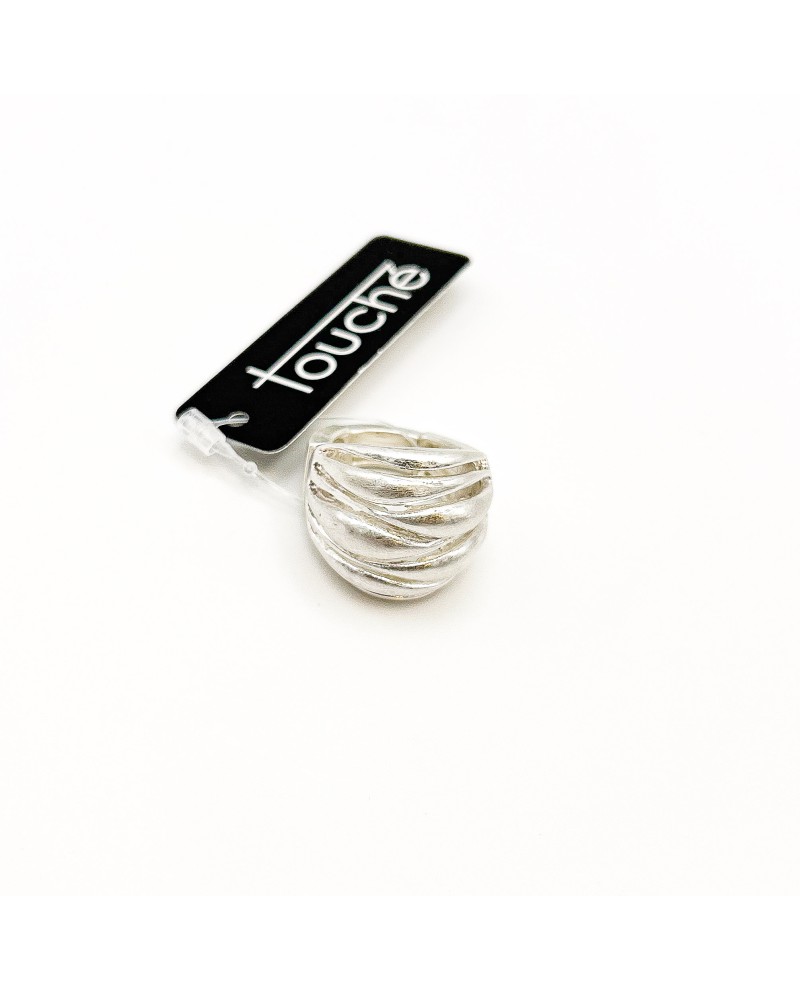 Anillo plateado mate con diseño ondulado. Modelo elástico de Touche, elegante, moderno y muy cómodo.