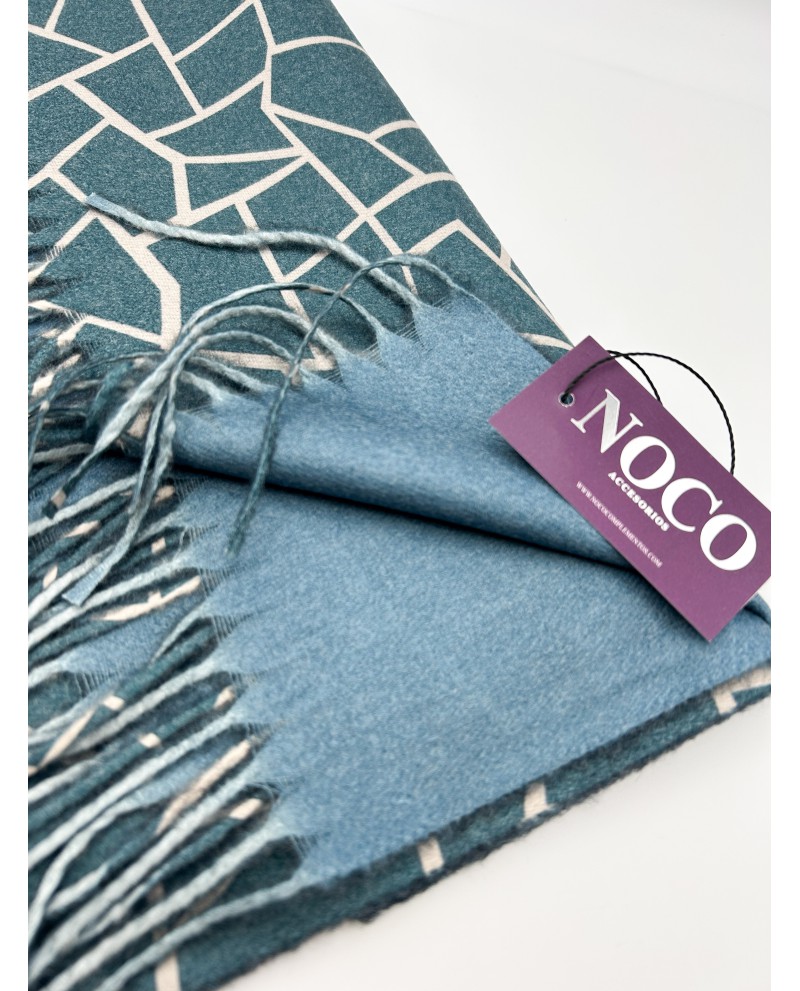Pashmina reversible con estampado geométrico en tonos azul petróleo y gris claro. Suave, elegante y muy combinable, ideal para esta temporada.