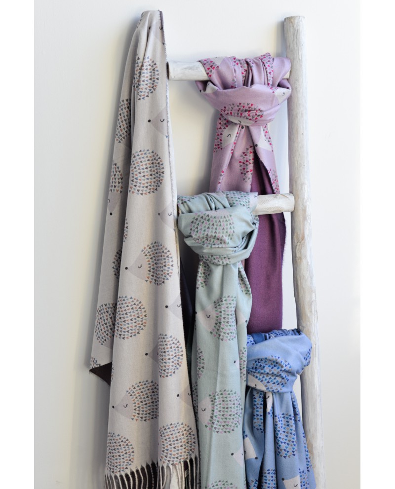 Pashmina de tacto suave con encantador estampado de erizos sobre fondo beige. Cálida, ligera y muy combinable para el día a día.