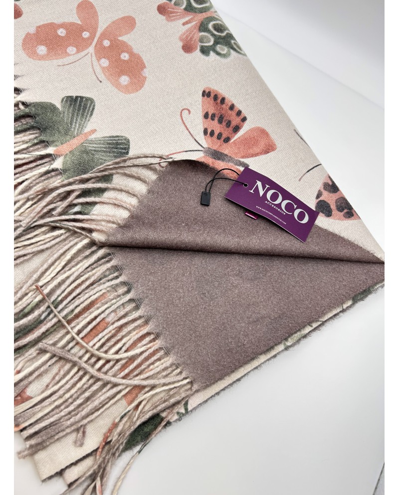 Pashmina de tacto suave con estampado de mariposas sobre fondo taupe. Cálida, ligera y con un diseño femenino y muy combinable.