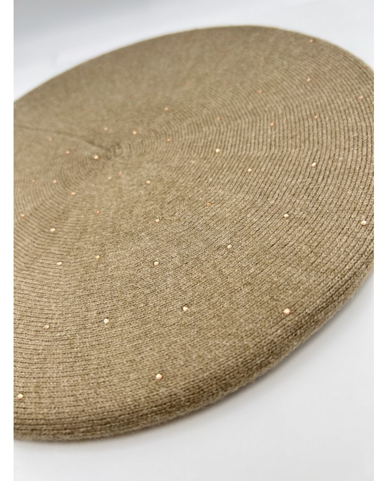 La boina joya de lana beige de Noco Complementos combina la calidez del tejido con la elegancia de los detalles brillantes.