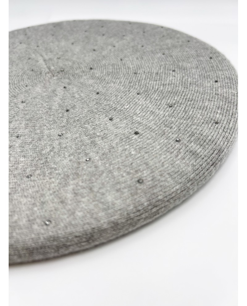 Boina de lana gruesa y elástica con textura suave, decorada con strass brillantes en el tono de la prenda. Elegante, cómoda y fácil de combinar.