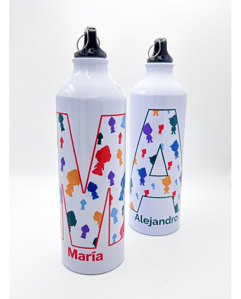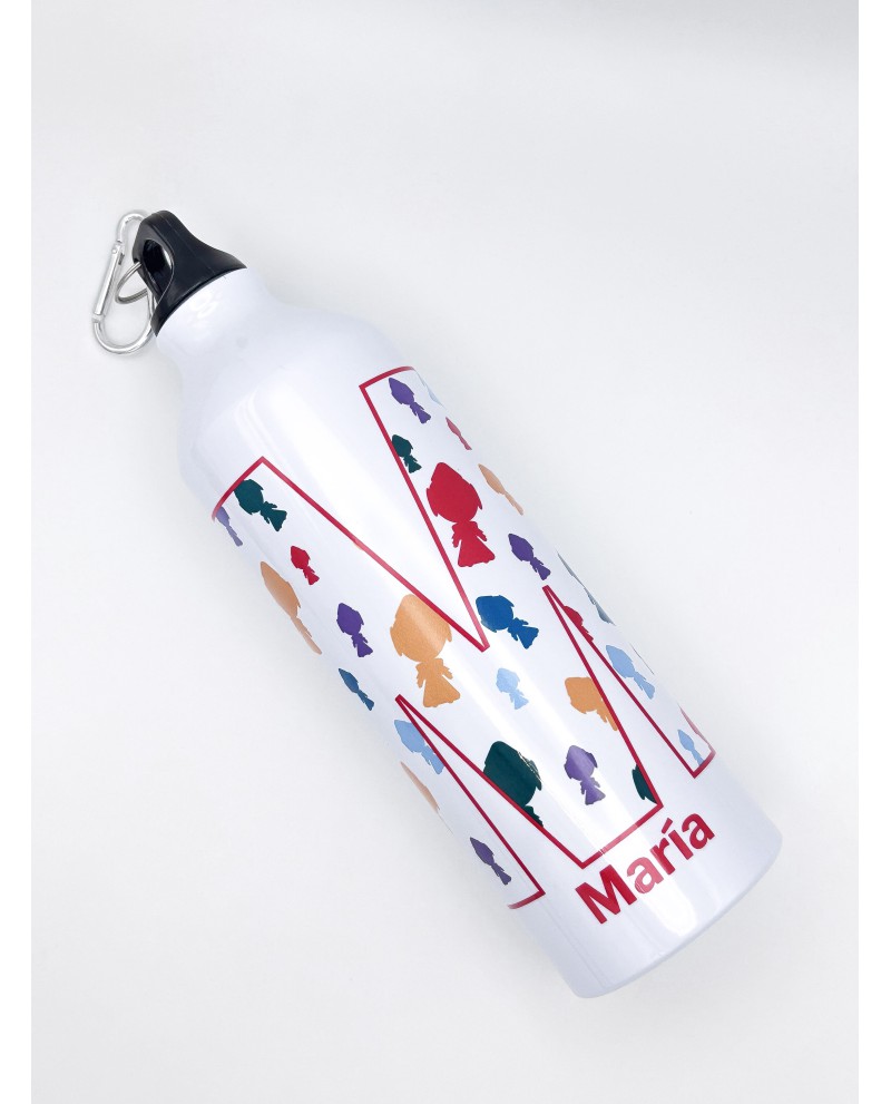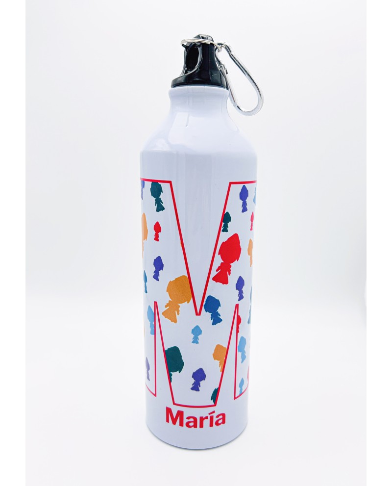 Botella de aluminio fallera personalizable con nombre o cargo. Ideal para quienes viven las Fallas los 365 días del año.